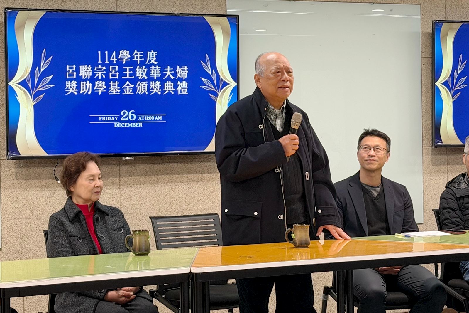國立臺灣師範大學體育與運動科學系於12月26日舉辦「114學年度呂聯宗呂王敏華夫婦獎助學基金」頒獎典禮。52 級校友呂聯宗學長與呂王敏華賢伉儷特地自臺南返回母系,親自頒發獎助學金並勉勵學弟妹,展現對母校深厚的情感與長遠的承諾支持。典禮現場氣氛莊重而溫馨,充分體現「飲水思源、傳承感恩」的精神。